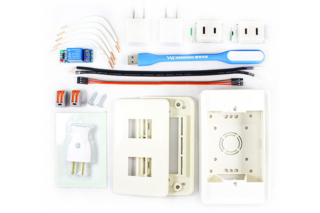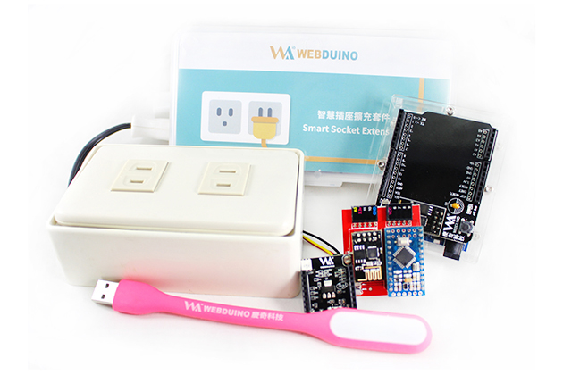 實現智慧插座各種創意實作的電子元件組,搭配「Webduino 智慧插座」和「實戰家電物聯網」一書,帶您從行動裝置控制到串接網頁資料庫等多項有趣的互動應用。