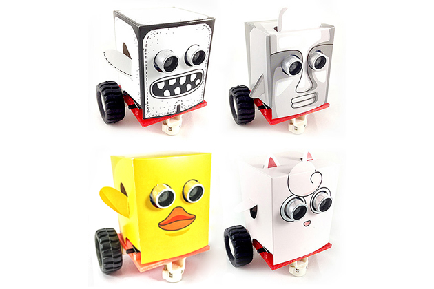 Webduino 公仔自走車是 Webduino 自主研發的產品,產品內附贈四組紙公仔造型,可以讓多台車互相連動,或結合行動裝置做出各種應用。