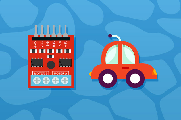 透過 Webduino 和「雙馬達驅動晶片」的輔助,我們可以讓一般家用玩具車使用 Wi-Fi 來操控。